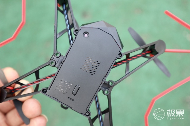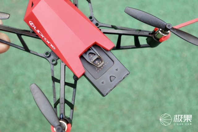 背面左上方是一颗光流传感器是用来定位的,由于光流传感器的特性在特定环境下有较大影响如水面、光照剧烈变化的环境、运动物体表面等,雪地、大斜坡等所以尽量避免在这些区域飞行。