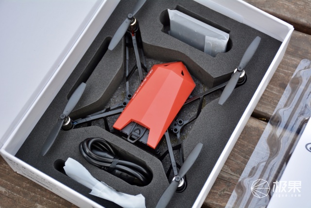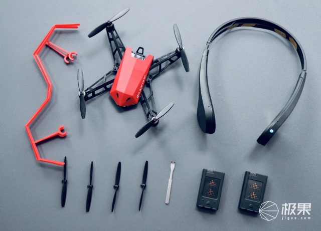 配件有防撞条、意念机、一副备用螺旋桨、一根撬棒、两块电池、数据线。