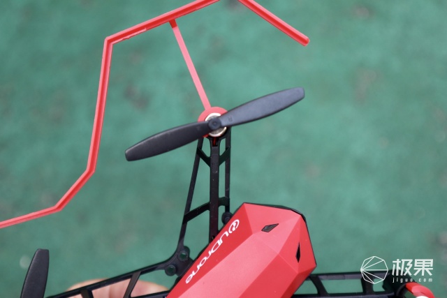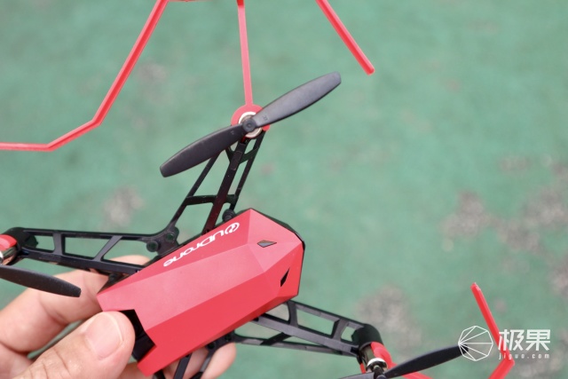UDrone意念无人机采用四轴设计,整体采用具有韧性的塑料材质,主要起到防摔防撞作用。组装起来也非常方便只需要把防撞条卡在螺旋桨下方在放好电池就行了。