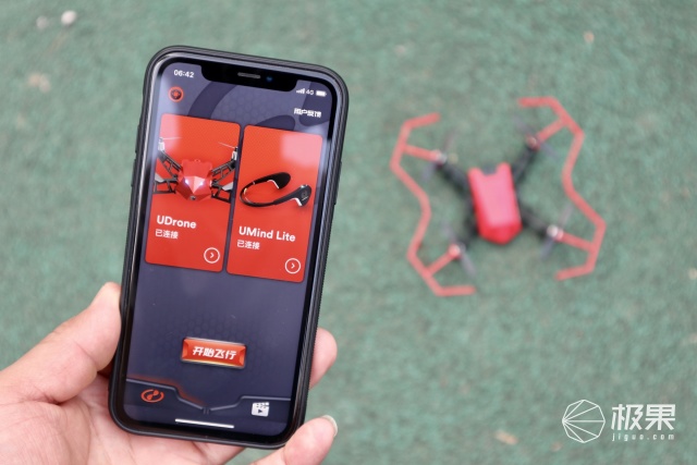 UDrone意念无人机拥有两种操控模式,手机和意念机。手机操控相对比较容易些,而UMindLite意念机刚上手会有点生,需要练习练习熟练后也很简单。