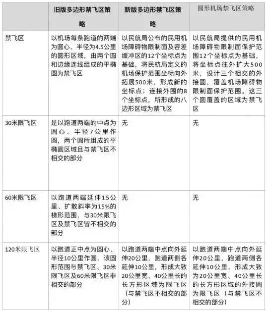 禁飞区策略示意图、新旧禁飞区策略对比表格