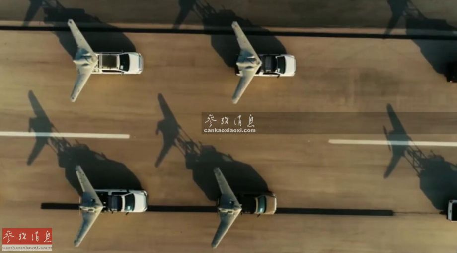 军演视频中展示的“见证者”-123小型攻击无人机群,可见其略带前掠角的主翼布局