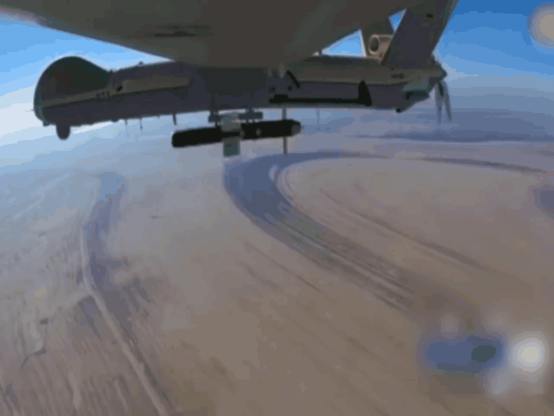 “见证者”-129攻击型无人机起飞、投弹并命中目标动态图