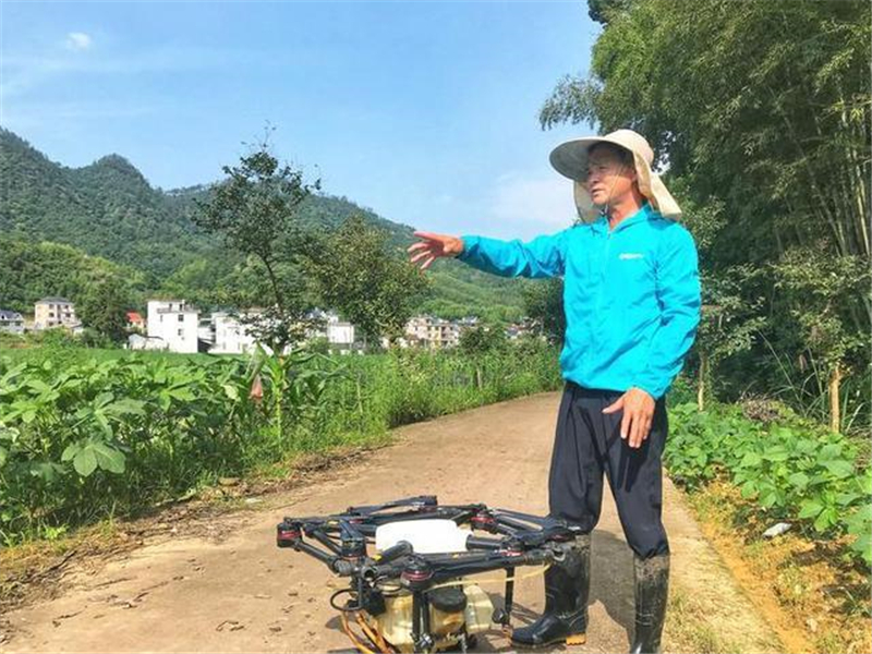 (张江旭和他的植保操作无人机)