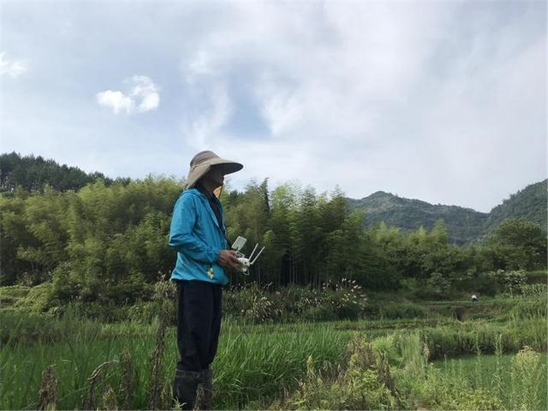 (张江旭在操作植保无人机)