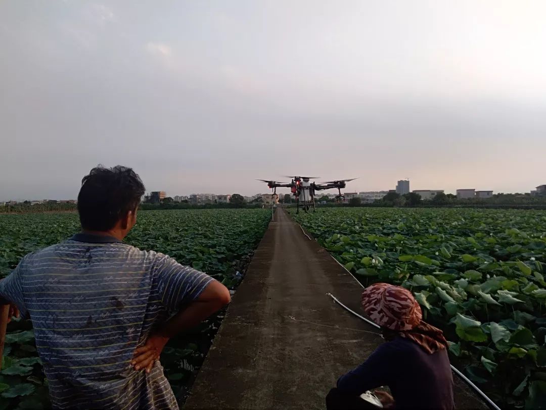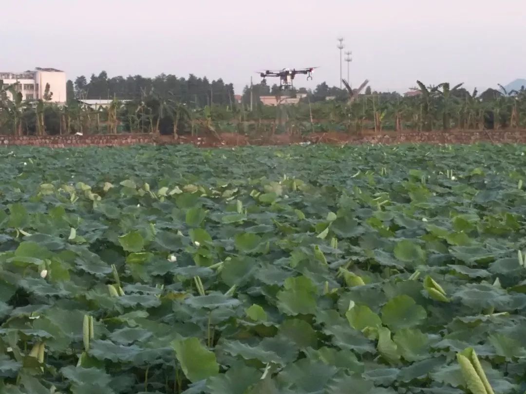 前段时间,藕塘的耕户卢先生一直苦于莲藕田间管理的问题:他承包种下的120亩的藕塘,如果用传统方式施药会破坏莲藕生长,粗放式施药既不科学也达不到效果。