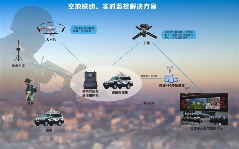 当天,8时45分,随着2枚红色信号弹腾空而起,1200多名演练人员庄严宣誓“践行新使命忠诚保大庆”,并进行了街面暴力犯罪案(事)件处置、公安武警大规模防暴处突队形推演、特警武警极限体能演示、特警综合格斗术演示、武警特种战术基础动作演示、空地联动协同出击等科目演练。慧明捷的系留无人机在本次演练活动中长时间飞行将高空巡视过程中的演练现场语音和图像实时传输到通信指挥中心,形成全景的摄像和监控。慧明捷系留无人机飞行时间长、拍摄的图像清晰,语音连贯,实现了指挥中心和活动现场的互联互通,极大的加强了对现场的侦查、控制和指挥。获得了领导的一致好评。