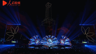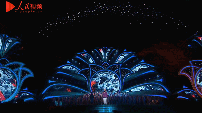 无人机编队在天幕间借助科技赋予民歌新的展现方式,演绎中国优秀文化新时代的活力!