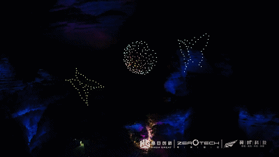 在这雄奇秀丽的山水景观、恢弘大气的优美乐章中,我们再创业界先河,打造全球首次双型无人机混合编队表演!