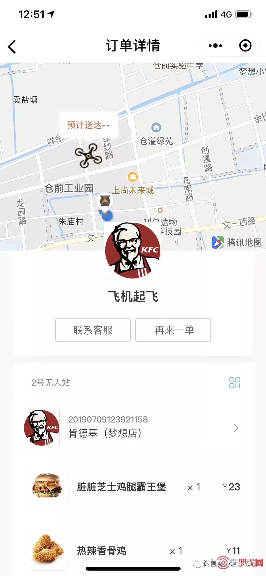 “送吧空运”下单,下单后会生成二维码,消费者只需在取餐窗口扫描取餐二维码,听到“扫码成功”提示音响起后,等待15秒,就可以从取餐口取餐。消费者表示,不仅速度比普通的人工配送更快,并且味道也丝毫没有打折。即便雨天午高峰,也可以实现下单16分钟送达。