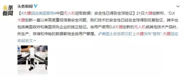 尽管后来,科研机构出了报告,证明不存在窃取数据的问题,美军还是坚持封杀大疆。