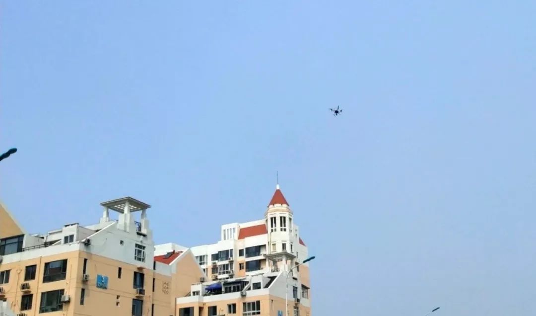 现场除了交警现场对违停车驾驶人劝离、摄录查处之外,交管部门也在使用警用无人机摄录违停车。