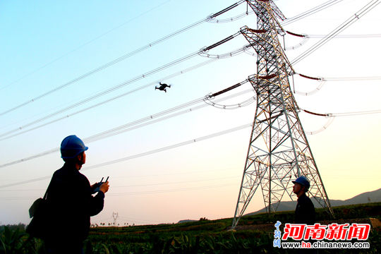 酷暑高温大负荷季节,用无人机特巡特殊地段线路(南阳供电公司供图)