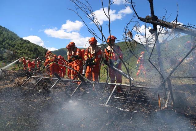 此次演练模拟龙门山断裂带发生6.0级地震,导致川主寺镇牧场村线路碰撞引发森林火灾,该支队按照任务要求派出队伍前往处置。从演练现场看到,到达火场后,该支队动用无人机火场侦查,现场指挥员科学判断定下决心并在战前动员提振队伍士气,水泵灭火压制火头、常规机具跟进清理,各个要素完全按照真实情况处置,紧张有序展开灭火救援。最终通过采取打清结合的方式,对火场进行合围,实现火场“三无”。