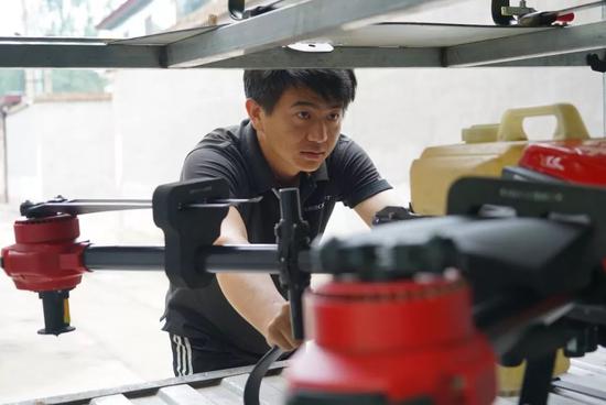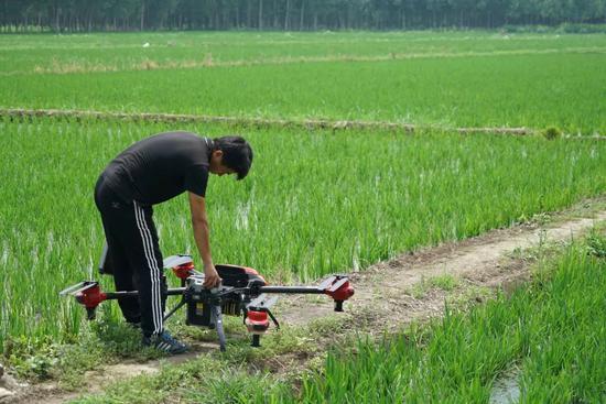 杨冲告诉《中国企业家》,旧式的洒农药方式累人又费时,背着30斤重的农药桶在地里,身上被勒出血印子不说,一天早出晚归最多只能作业15亩地,60亩地最少得花4天时间,洒药还不均匀。