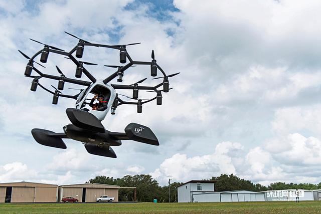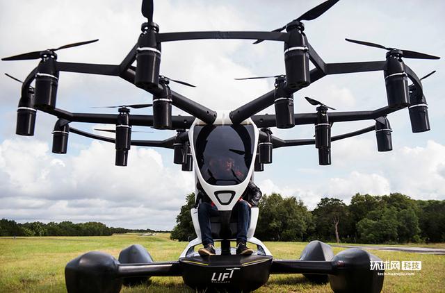 当地时间2019年6月3日,美国德克萨斯州拉哥维思塔,Lift Aircraft公司展示Hexa个人无人驾驶飞机。它有18个电动推进器,最大速度101km/h,最大飞行高度1200英尺(366米),续航10-15分钟。今年将在25个城市进行推广。