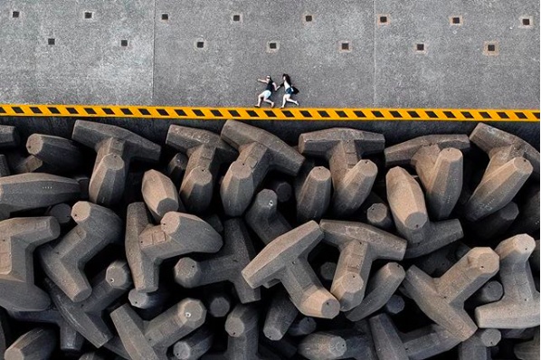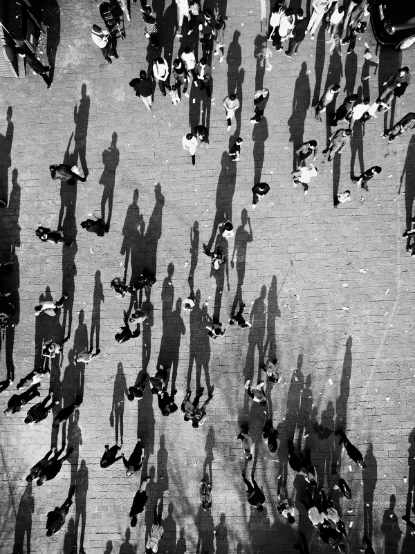 (无人机航拍作品,城市街道上的人群。)