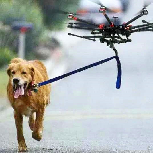 一,无人机遛狗还是狗遛无人机。