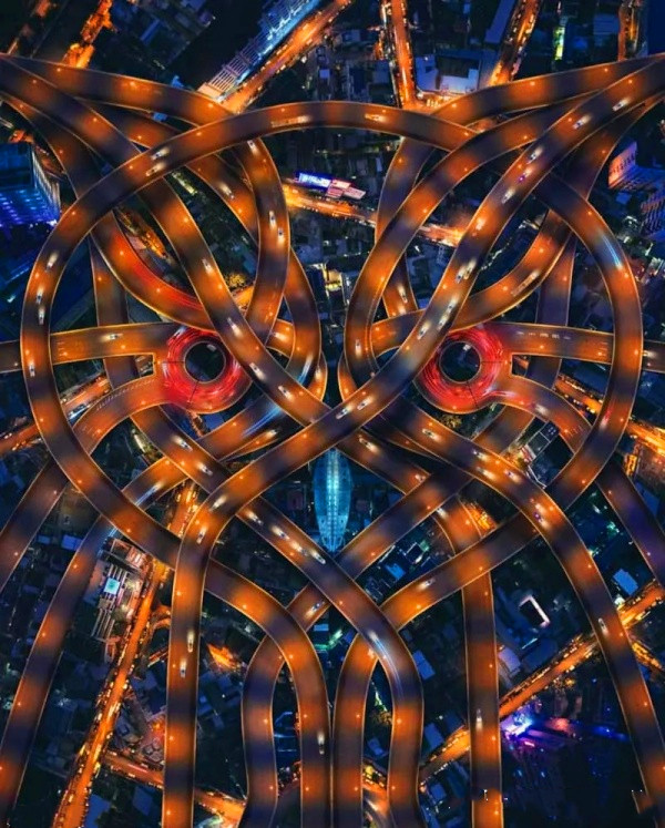 (无人机航拍作品,城市中的立交桥。)