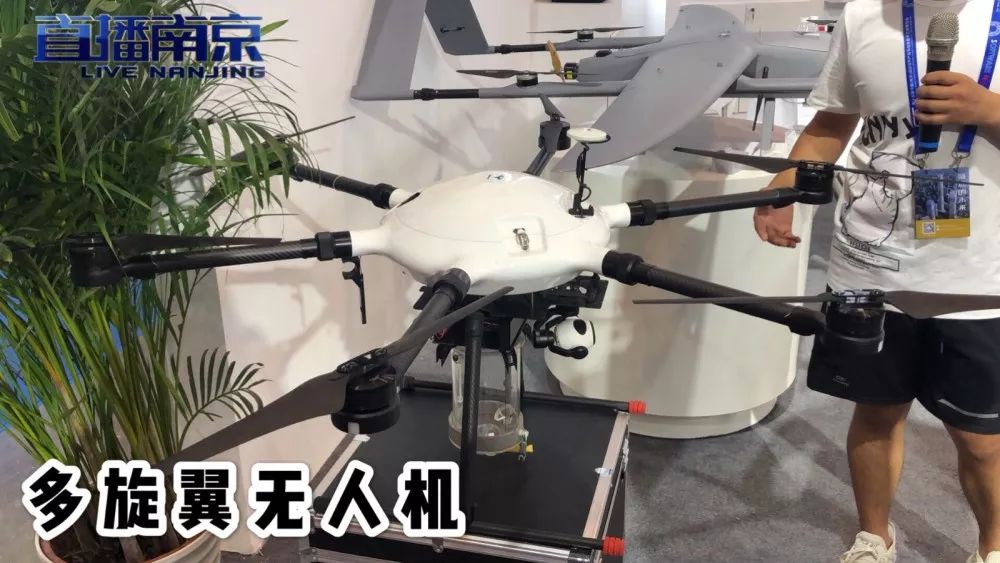 在4号馆的中心展区内,两台无人机抓住了不少观众的眼球。这两架无人机分别叫,多旋翼无人机和垂直起降无人机。