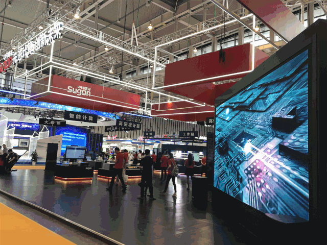 这里有新型研发机构展区,智慧教育展区,信息消费展区……