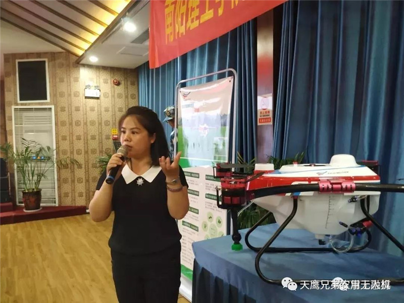 随后,天鹰兄弟集团销售总监张思玲为大家介绍植保无人机的潜在市场及植保无人机前沿技术、操作知识等内容。张思玲表示,天鹰兄弟通过从农民的职业化、土地集约化、作业的机械化、服务专业化四个方面服务南阳的地方经济,助推南阳的地方经济发展。