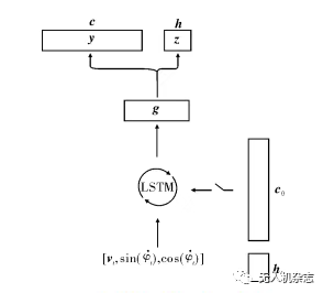 网格单元的循环层是具有128个隐层单元的LSTM,该循环层的输入为向量[v,sin(φ) ,cos(φ) ],初始时刻的地面真实位置,活动c0和头朝向活动 h0 分别经过线性变换后得到 LSTM的初始单元状态和隐藏状态的初始化值 l0和m0。LSTM的输出是一个经过正则化的线性层,该线性层的输出gt是由线性变化得到的,并通过两个softmax函数计算出预测的头朝向单元活动zt和位置单元活动yt。研究表明线性层激活gt中含有网格状单元及头朝向状单元。