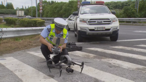 奉贤交警支队高速大队警长富春健表示,如果遇到无法使用无人机的天气,民警还会通过警车不间断巡逻观察流量情况。