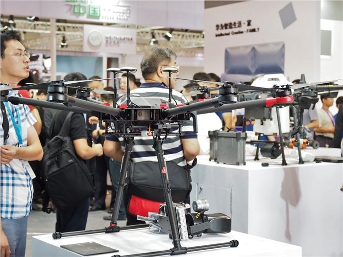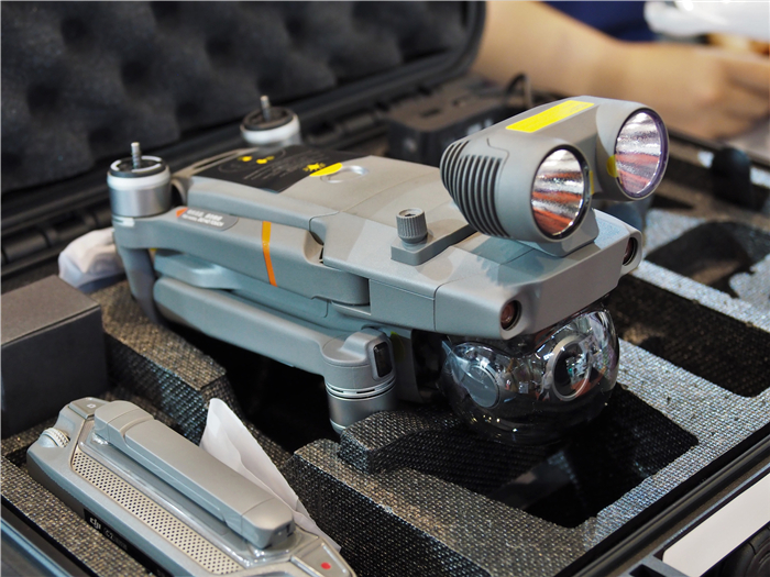 大疆御MAVIC 2作为大疆消费级航拍的旗舰机也在此次展会上展出,大疆御MAVIC 2配备哈苏镜头,变焦版还支持2倍光学变焦,支持1080P高清图传,支持4K HDR视频录制,性能十分地强大,现场也吸引了不少的参观者。