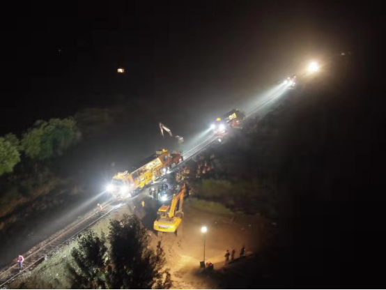 由于水害断点较多,影响范围较大,齐齐哈尔工务段使用无人机观察水情和断道情况,及时调整抢修方案。由于水害原因,路料运输车无法抵近抢修现场,近200名职工充当“人力传输带”,徒手传递块石、路料。同时,因为抢修线路持续两个夜晚遭遇多次降雨,抢险人员克服雨中光线暗、作业面积狭小等困难,不间断进行抢险作业,确保线路在最短时间内抢修开通。
