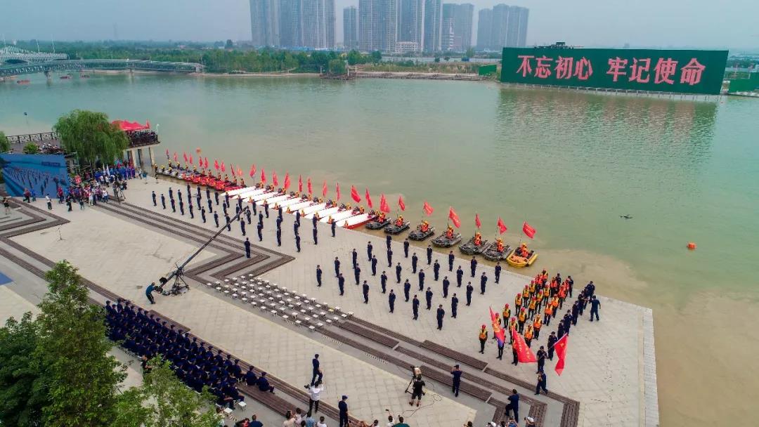 7月19日,河南省消防安全应急指挥部、防汛抗旱应急指挥部在郑州市天健湖联合举行防汛应急救援综合演练。