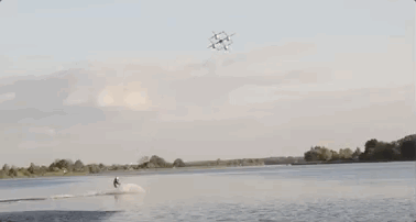 而无人机前置的摄像头也可以让使用者在第一时间了解现场情况。当然了,它还可以配备上喷枪,给风力发电机除雪,除冰。在搭配上大容量电池的电池后,还可以带着你在海上玩冲浪!
