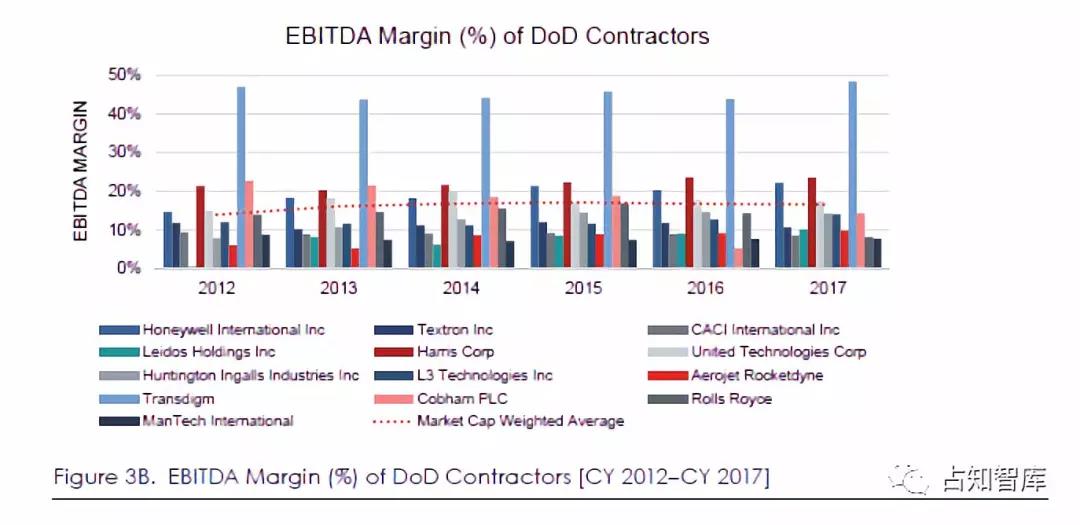 总体而言,主要国防供应商在扩大市场份额的同时保持了财务健康。国防产品和服务的主要供应商是盈利的,在利息、税收、折旧和摊销前利润(EBITDA)之前显示为正收益。