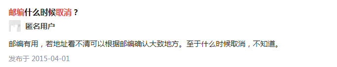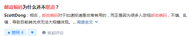 ↑知乎上几年前就有关于是否应该取消邮政编码的讨论↑