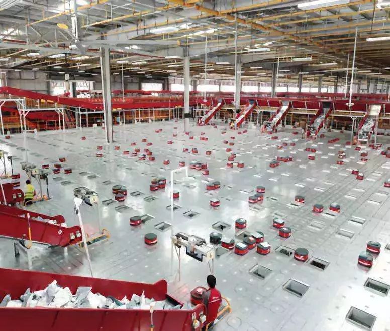 ↑京东通过快递单号信息数字化实现机器人智能化分拣↑