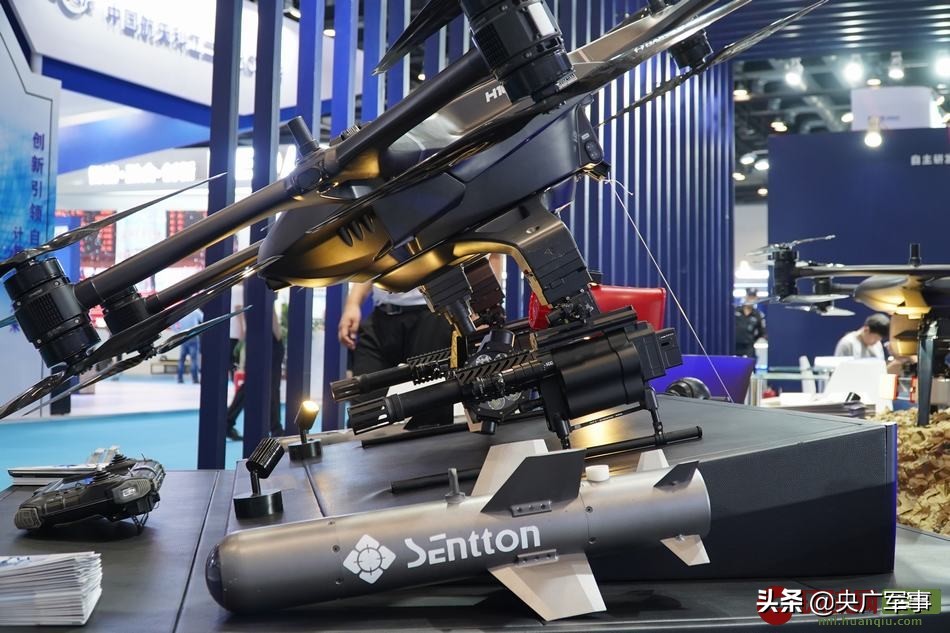 展出的这架“战斧H16”无人机装备了高空发射枪模块,每挺发射枪能够连打5发38毫米口径爆震弹、催泪弹、烟幕弹或是子母弹。
