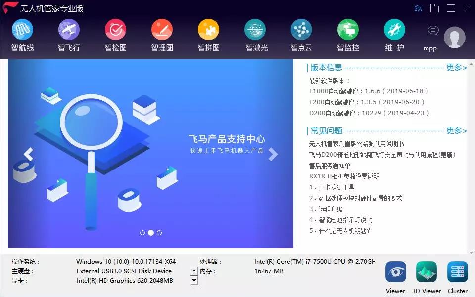 与此同时上线的还有点云后处理模块——智点云。随着激光雷达技术的普及,点云的应用越来越广,但市面上的点云后处理软件,界面不够友好,操作复杂,用户交互体验性差。而飞马致力于为广大用户提供软硬件一体化的解决方案,在其D200 LiDAR模块可获取并解算输出标准点云的基础上,开发了一款简便实用的点云后处理软件--智点云。相对于市面上其他点云后处理软件,其操作更简单,使用更方便,满足用户的点云后处理需求。无人机管家测量版及全模块版用户联网更新即可免费升级使用。