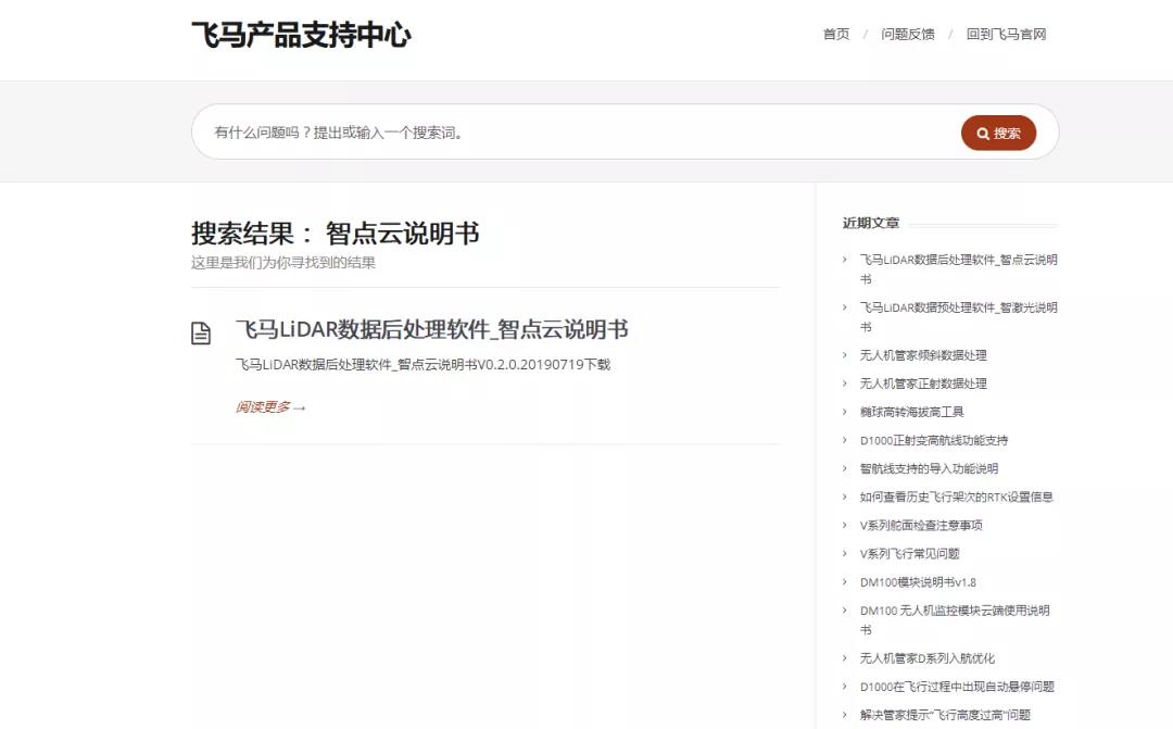 2、进入飞马技术支持中心页面,搜索关键字或主要内容,即可进行相关文档的阅读或下载。