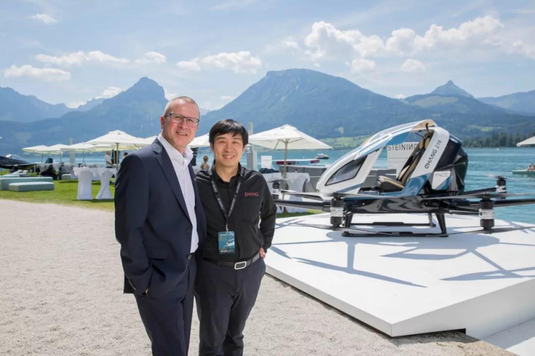 (FACC首席执行官Robert Machtlinger与亿航智能创始人、董事长、CEO胡华智)