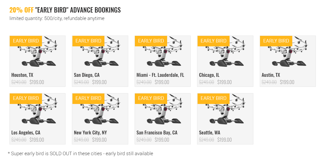 巡演将在2019年底开始,计划访问美国的25个城市,并在每个城市设立临时的飞行中心。但是由于试飞航班数量有限,需要提前订票。