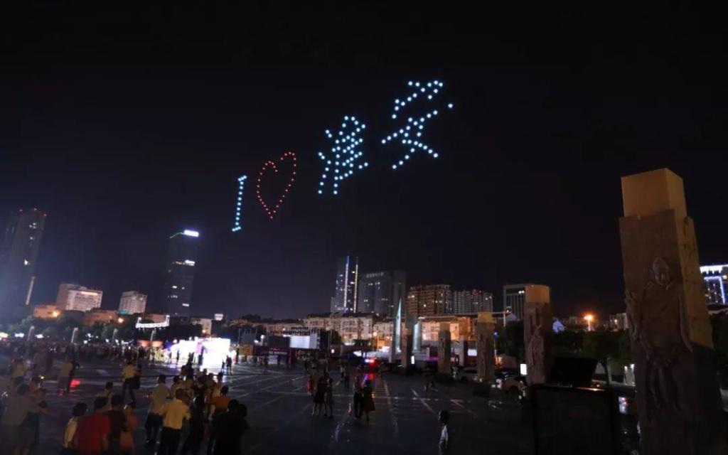 当无人机缓缓升起,在天空中摆出光影变换的文字时,那一刻,多少人心潮澎湃,是震撼或是感动,更多的是为淮安这座城市而心动。