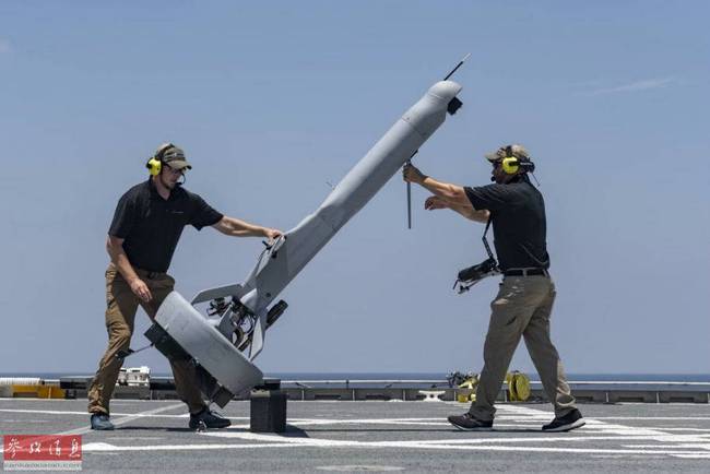 美海军地勤人员将V-BAT无人机放置到起飞位置
