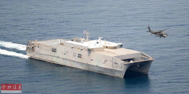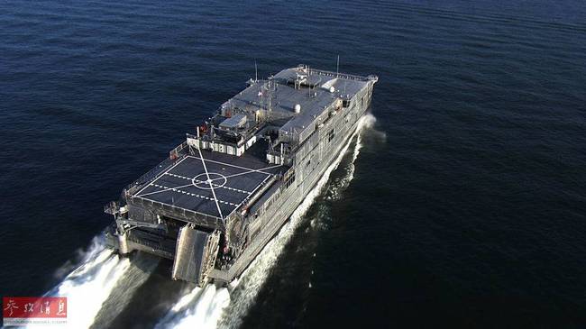 图为此次担任海上测试任务的“先锋”号远征快速运输舰,搭载4台喷水推进器,最高航速可达45节。