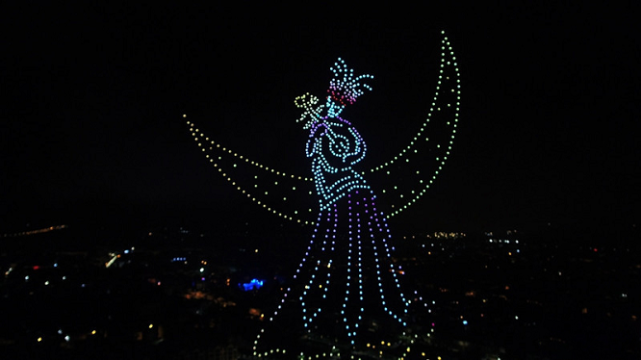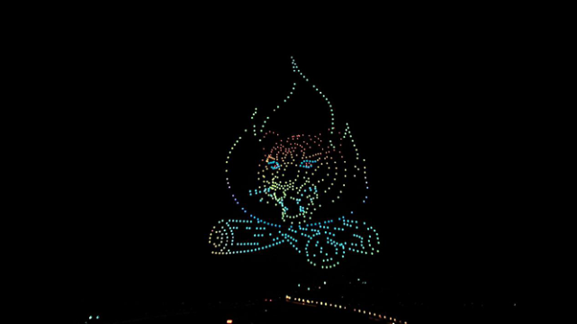 千架无人机呈现月琴女孩、民族图腾、熊熊火焰等独具特色的造型,高空造奇幻让现场观众大饱了眼福!