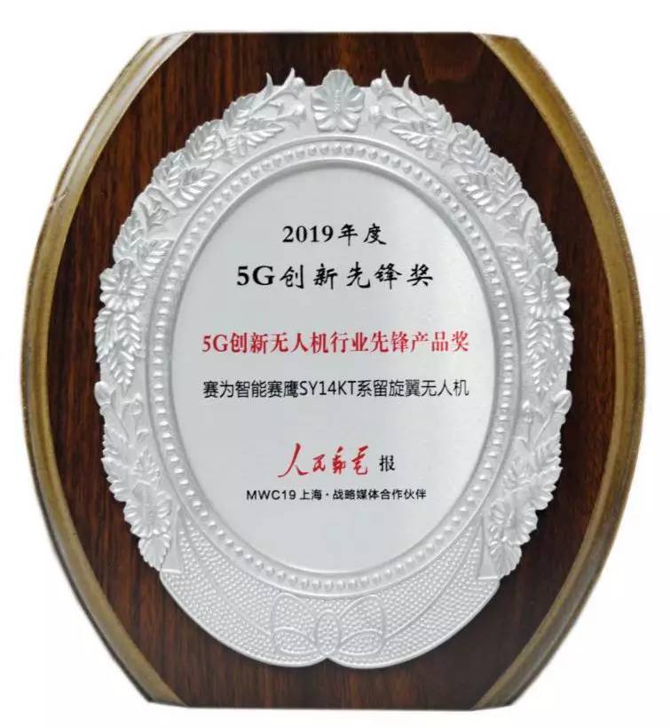深圳市赛为智能股份有限公司自主研发的赛鹰SY14KT系留旋翼无人机,从众多创新产品中脱颖而出,荣获5G创新无人机行业先锋产品奖。在“5G大产业”和“5G大融合”两大热点评选领域,赛为智能是5G+无人机领域唯一的获奖企业。