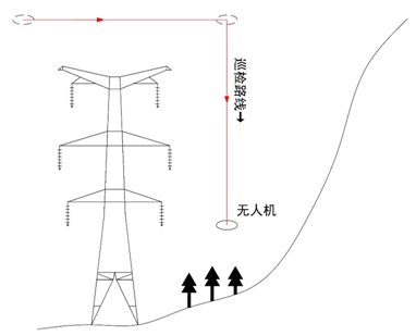 无人机飞越塔顶,在降高前可将无人机云台相机朝下90°,以评估上山坡侧地形地貌,调整飞机位置,在与杆塔保持安全距离的情况下,适当远离上山坡侧山壁、树木。此外,飞手宜轻柔打杆,防止动作过大无人机因惯性撞击后方贴近的障碍物。同时,在较低的高度拍摄时,宜多次将云台相机竖直朝下确认无人机与正下方地表、树木的距离是否安全。