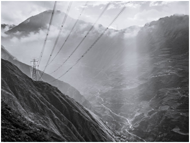 在大渡河、雅砻江、金沙江流域沿岸,输电线路沿悬崖绝壁蜿蜒而上,车辆能到达的地方(起降点)与塔位间的高度差往往超过1000m,部分塔位甚至超过2000m。