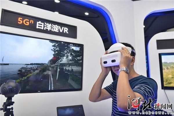 图为游客体验白洋淀VR实景