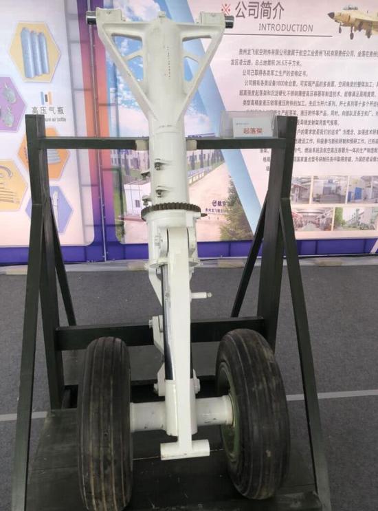 展出起落架的是贵州龙飞航空附件有限公司,这家公司隶属于航空工业贵州飞机有限责任公司,该公司擅长加工高精度筒,杆零件以及高精度液压锁等零部件,主要为歼6,歼7等十多种战斗机,以及无人机提供起落架装置,以及液压附件产品,除此之外,公司还生产多机种,多型号,零备件和导弹发射架氮气瓶。