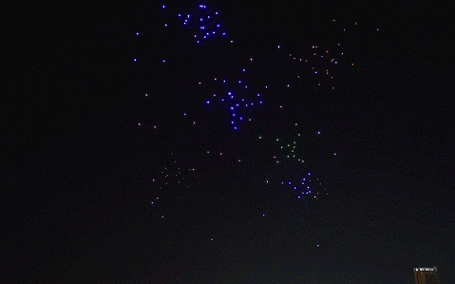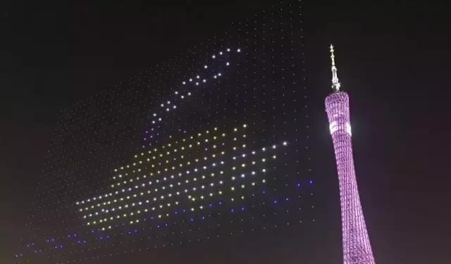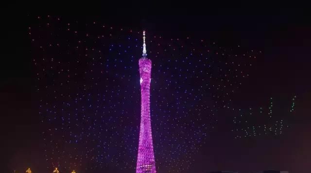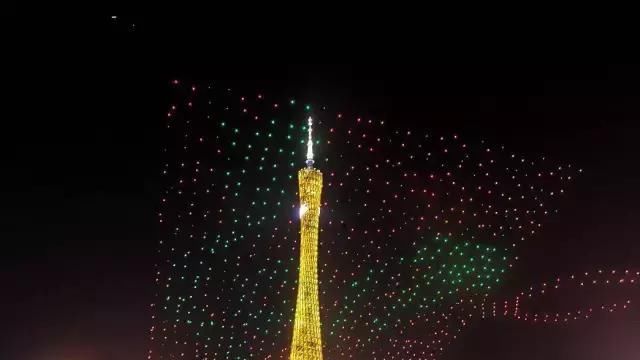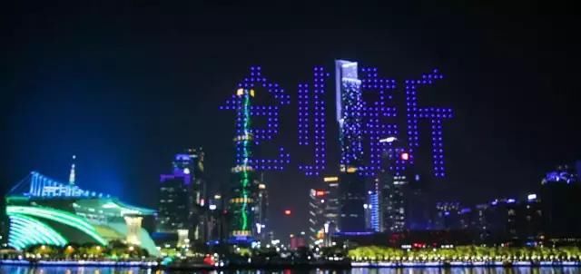 2017年元宵节之夜,“天幕流星·千机变”科技汇演在广州市中心海心沙广场举行,由1000架无人机组成的编队上演花式表演。